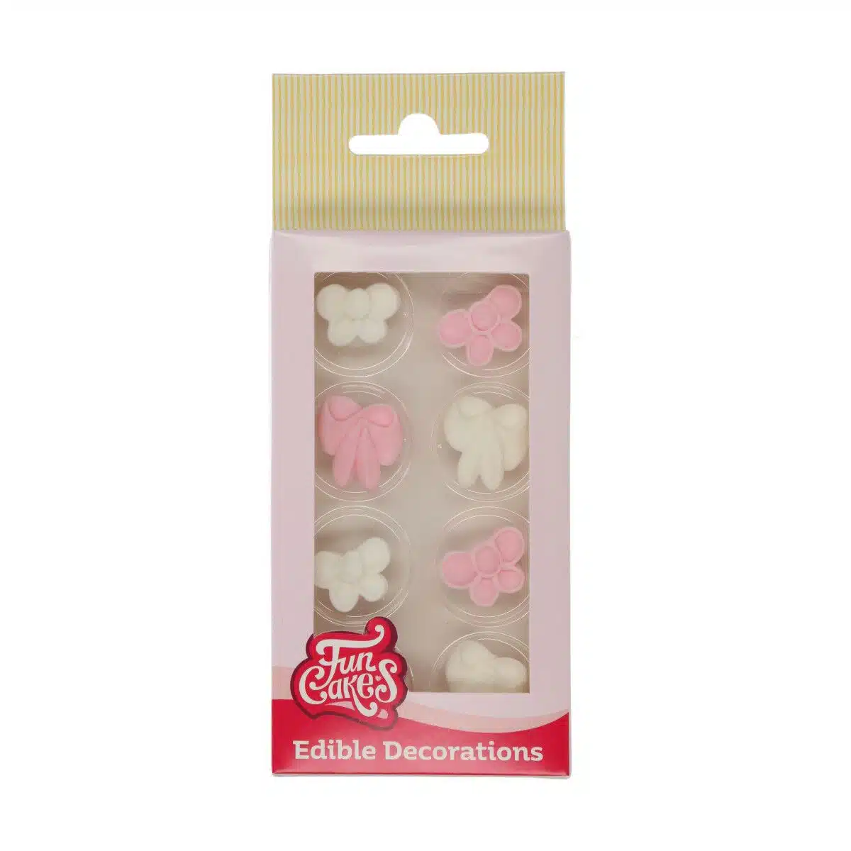De FunCakes suikerdecoraties strikjes zijn schattige eetbare versieringen die perfect zijn voor het decoreren van taarten, cupcakes en koekjes. De set bevat 8 gedetailleerde strikjes in de kleuren roze en wit, die een elegante en feestelijke uitstraling geven aan elke traktatie. De strikjes zijn ideaal voor diverse gelegenheden, zoals verjaardagen, babyshowers of bruiloften.