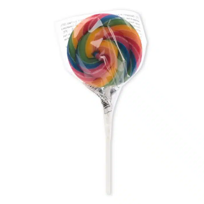 Mooie grote lolly in regenboog kleuren, zeer geschikt voor het decoreren van een vrolijke Drip Cake!