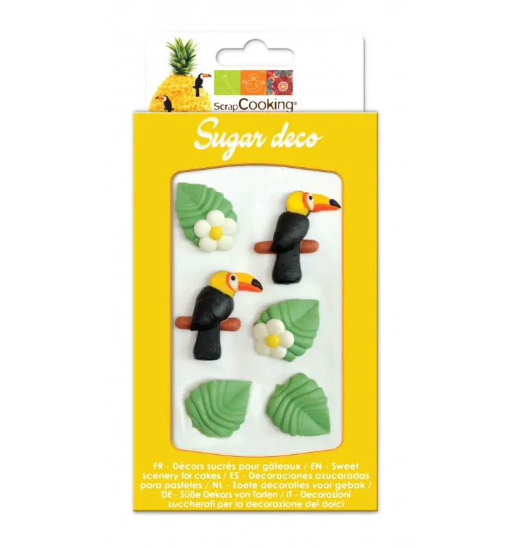 Met deze tropische grote suikerfiguren maak je van alle taarten en cupcakes een zomers feestje! Inhoud: 6 grote suikerfiguren.
