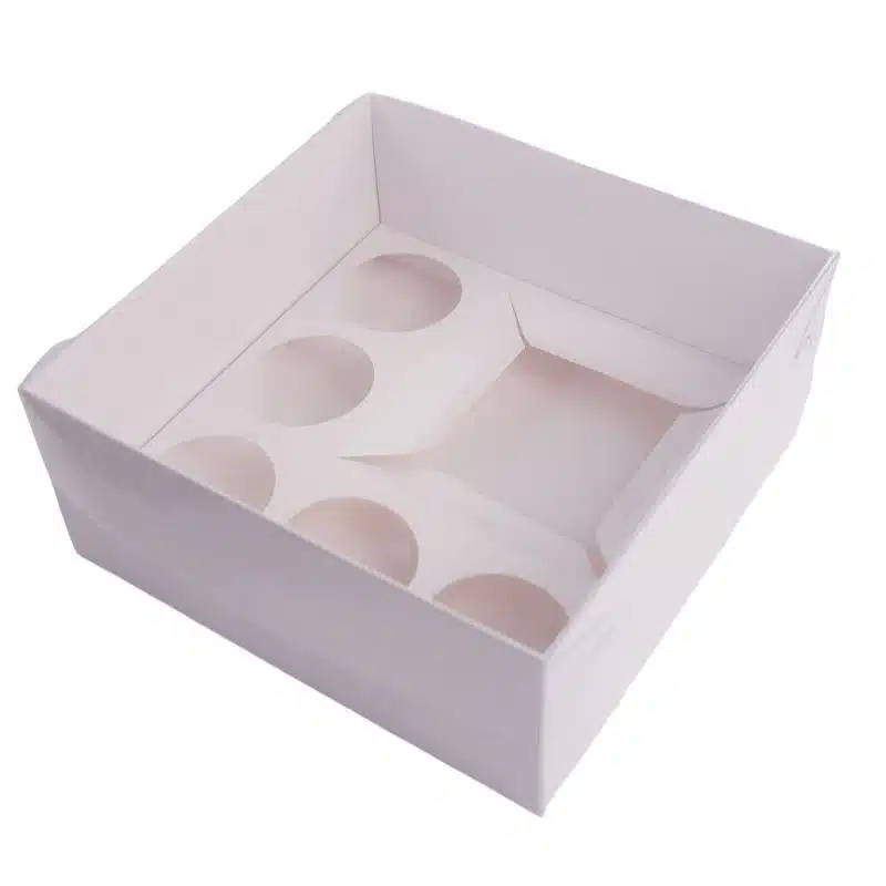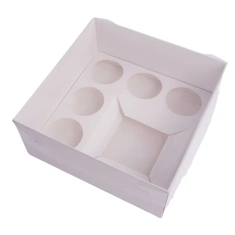Helemaal hip deze Bento Taart & Cupcakes Box. In deze Bento Box kan je een kleine taart en 5 cupcakes mooi presenteren. De doos bestaat uit een witte kartonen onderzijde met inzet en een transparante deksel.