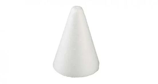 Een kegel dummy gemaakt van polystyreen materiaal (piepschuim). Deze kegel is heeft onder een doorsnede van 7 cm en is 19,5 cm hoog. Zeer geschikt voor kleine macaron toren of hoedje op Bumba taart.