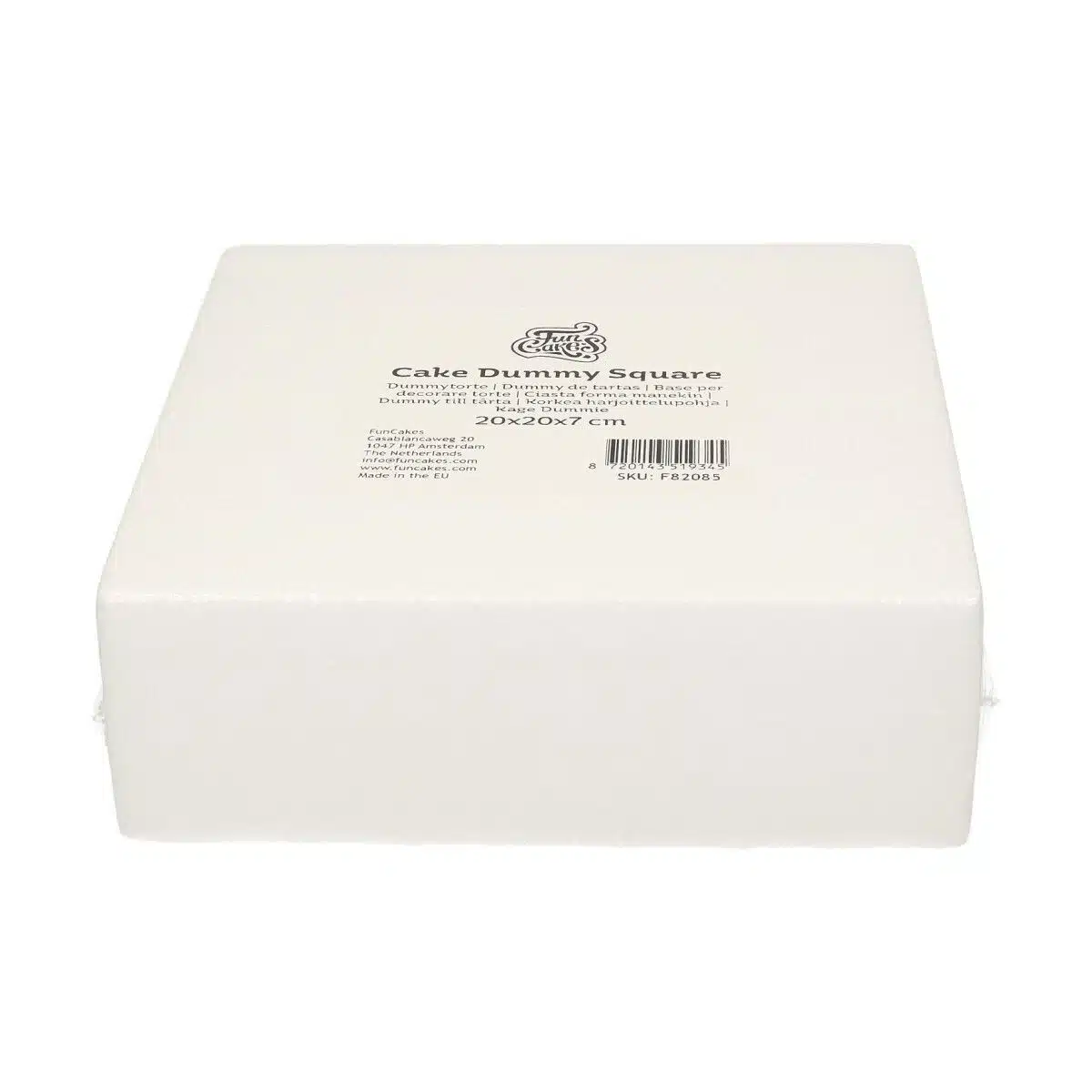 Maak een prachtige vierkante dummy taart met deze FunCakes Taart Dummy vierkant. De Taart Dummy is gemaakt van polystyreen materiaal (piepschuim) en werkt dus perfect om mooie en strakke dummy taarten te maken.