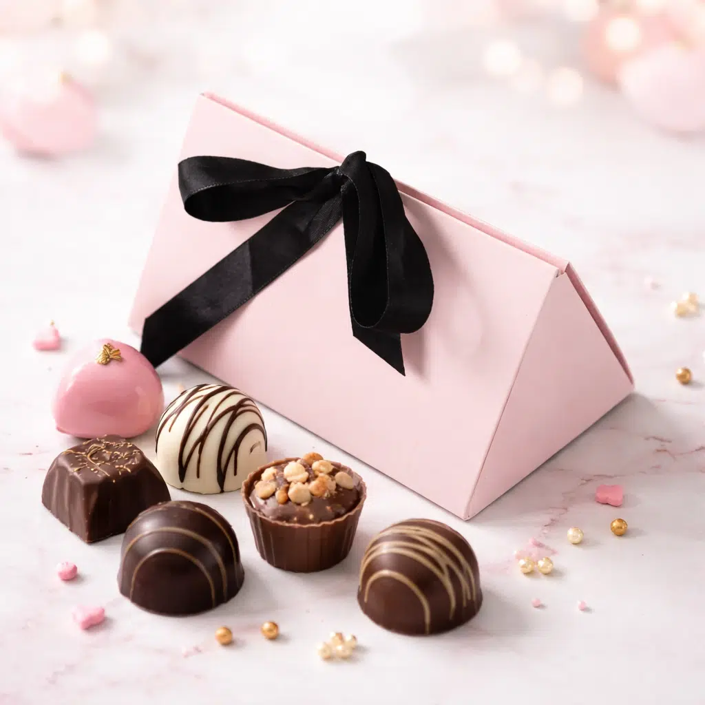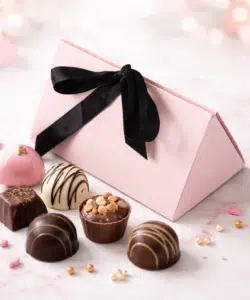 Presenteer jouw bonbons of patisserie op een stijlvolle manier in dit elegante roze doosje met zwart lint. Dankzij het luxe en lieve ontwerp is dit doosje perfect voor het verpakken van chocolade, macarons, koekjes en andere heerlijke lekkernijen.