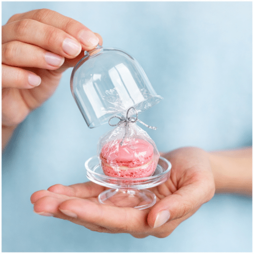 Geef je presentatie een luxe en speelse uitstraling met deze mini stolp van kunststof. Perfect om kleine traktaties, bedankjes of decoratieve items stijlvol te presenteren op een feesttafel, bruiloft, babyshower of evenement. Dankzij het compacte formaat is deze stolp ideaal voor individuele porties zoals bonbons of kleine cadeautjes.