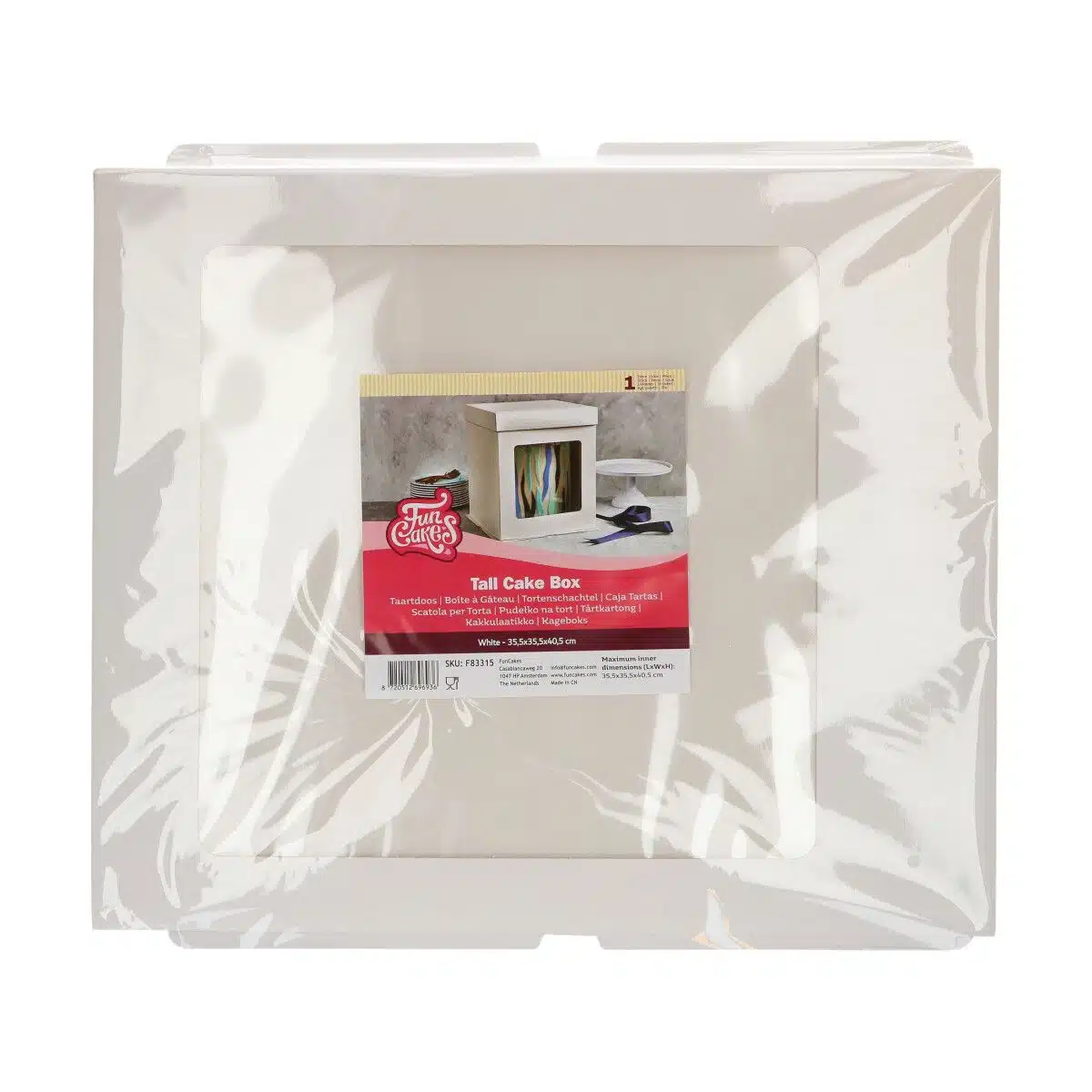 Deze extra grote stevig taartdoos van FunCakes is ideaal voor het vervoeren van grote gedecoreerde taarten, zoals bruidstaarten. Deze taartdoos is gemakkelijk in elkaar te vouwen, omdat deze voorzien is van klittenband. Daarnaast heeft deze doos een losse bodem en een losse deksel, dit maakt het plaatsen van een taart in de doos gemakkelijk.