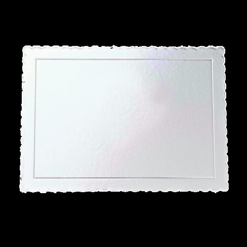 Stevig en sierlijk gekarteld rechthoekig taartplateau in de kleur zilver. Ideaal voor het presenteren van een rechthoekige taart of als serveerplateau voor diverse zoete lekkernijen.