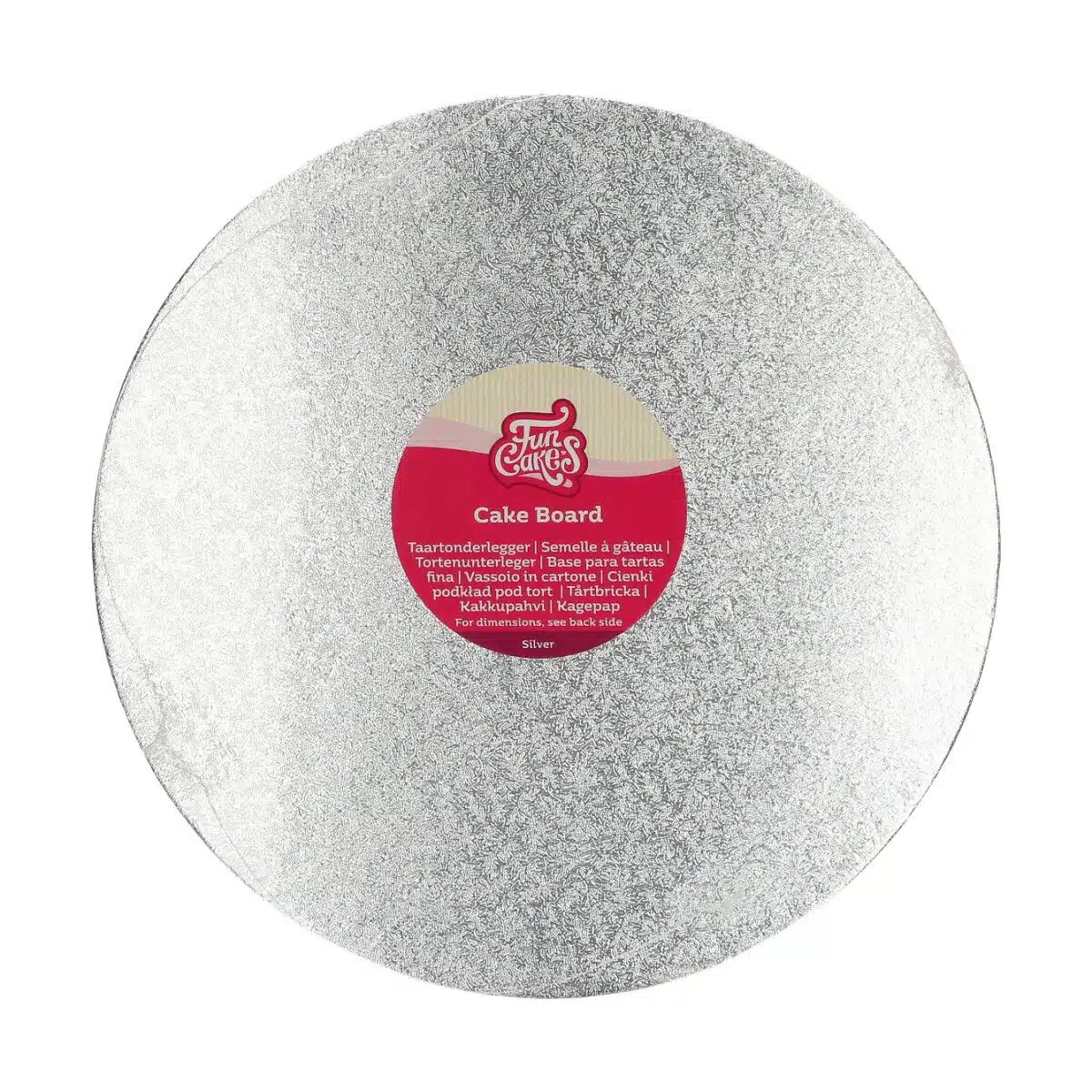 Een zilverkleurig rond bord met een diameter van circa 30,5 cm en 4 mm dikte heeft een hoge kwaliteit en luxe uitstraling. Het bord dient als onderbord voor taarten en is bij normaal gebruik meerdere malen te gebruiken.