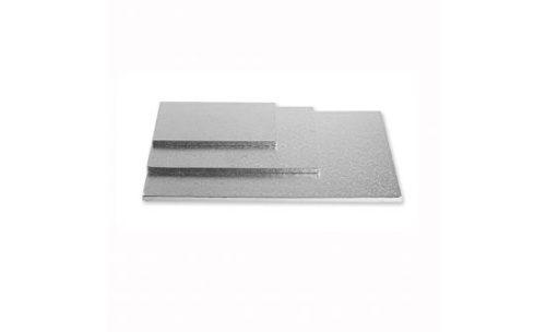 Een zilverkleurig luxe rechthoekige harde Cake Drum van 12 mm dik, dat dient als onderplaat voor een taart. Afmetingen van deze Cake Drum zijn 20 x 30 cm.