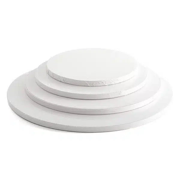 Een luxe harde Cake Drum van 12 mm dik in de kleur wit dat dient als onderplaat voor een taart. Doorsnede van deze ronde Cake Drum is 50 cm.