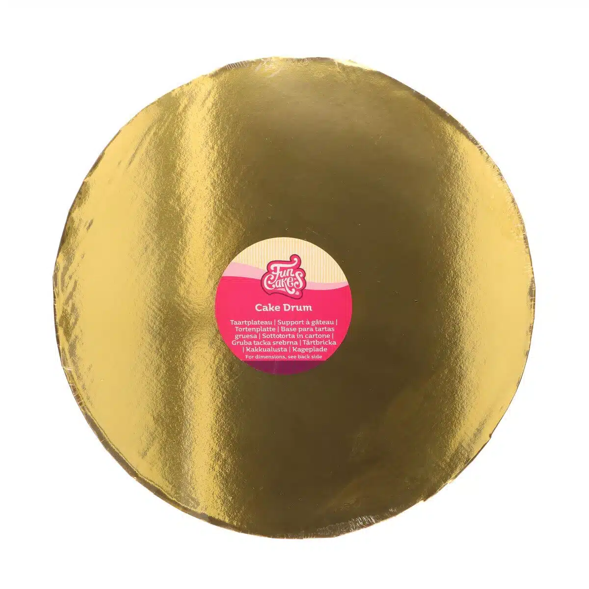 Deze goudkleurige luxe cake drum kan dienen als onderplaat voor een taart. De cake drum is van stevige kwaliteit en kan meerdere keren gebruikt worden.