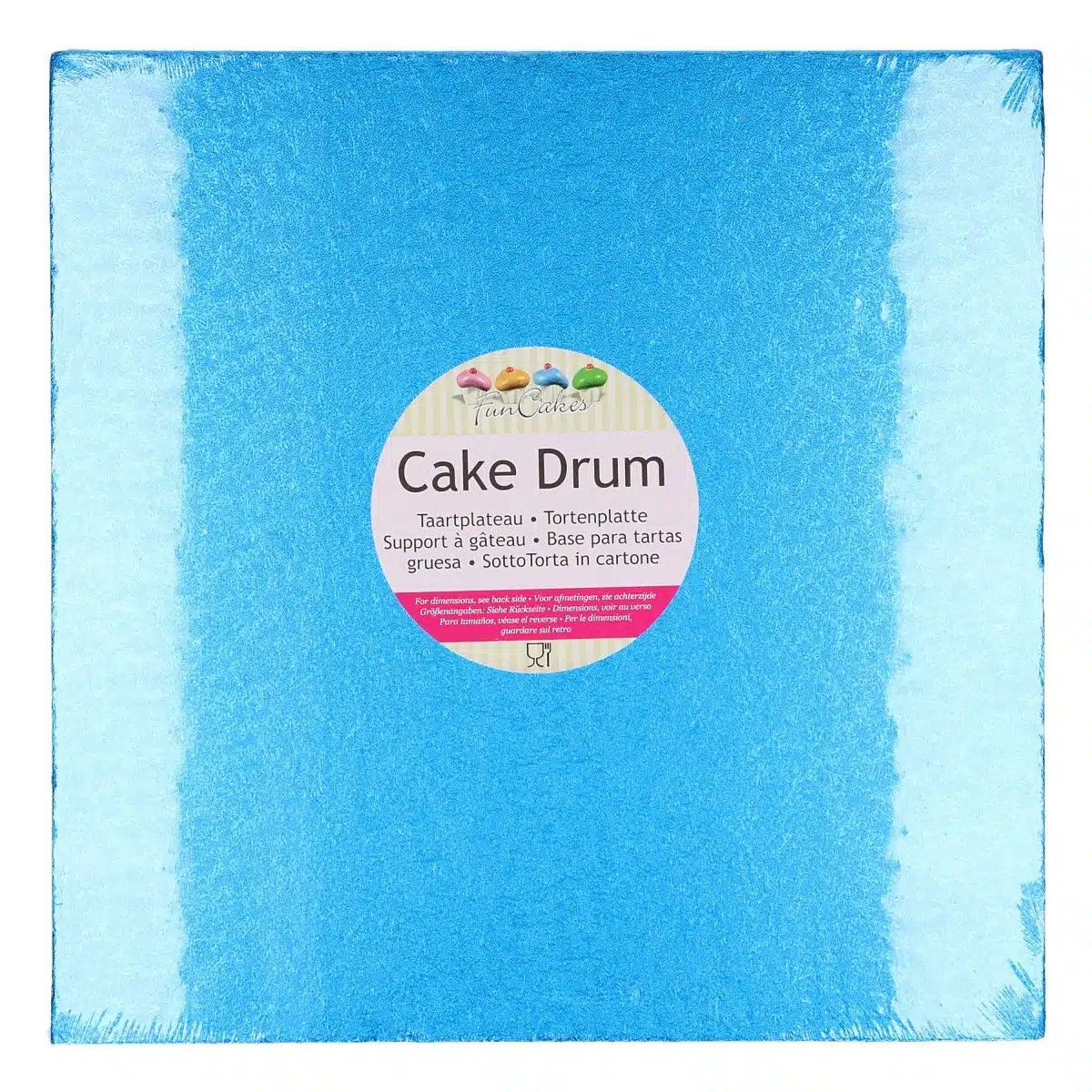 Plaats je zelfgemaakte taart op deze handige blauwe cake drum van FunCakes. De cake drum van stevige kwaliteit heeft een luxe uitstraling en maakt je taarten helemaal af.