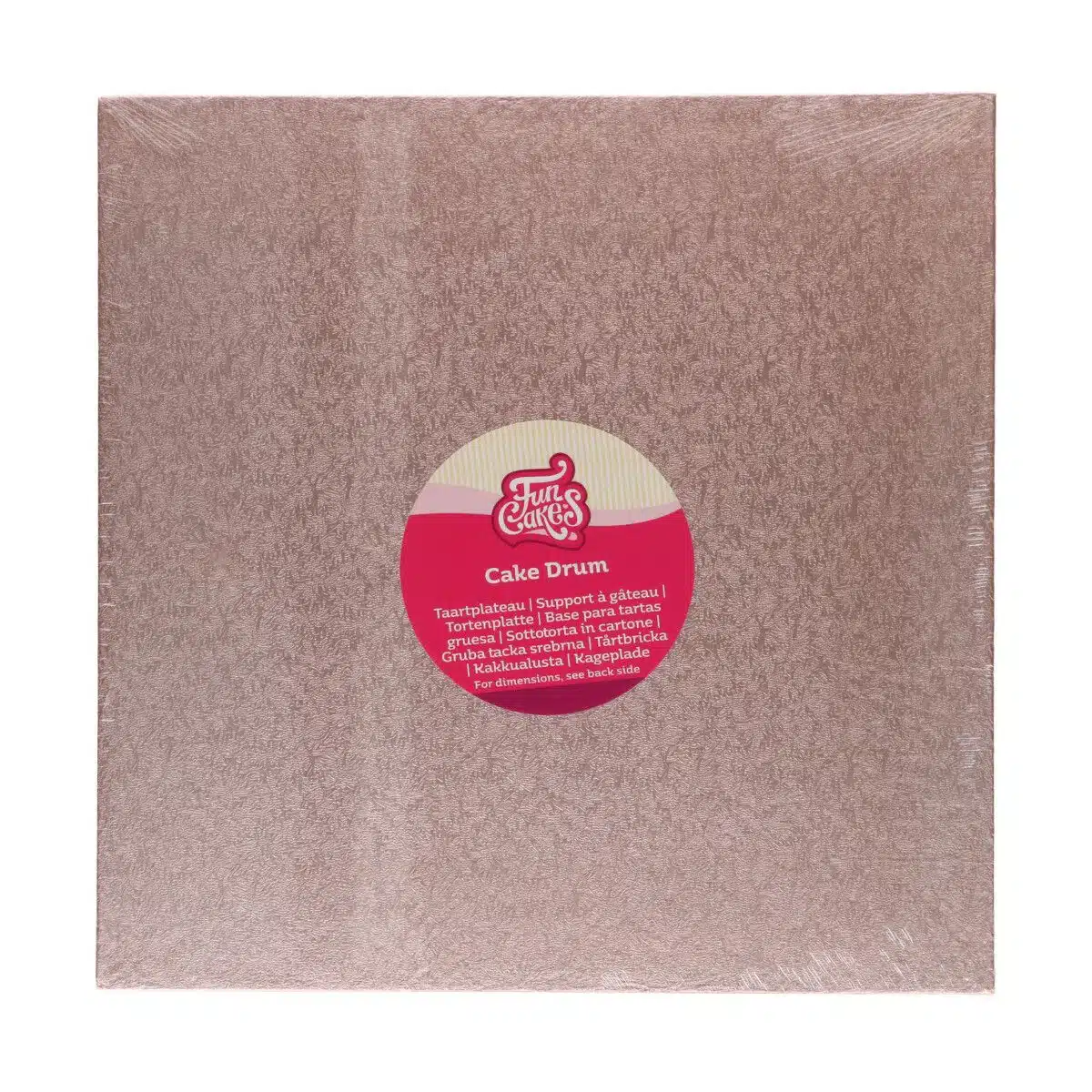 Plaats je zelfgemaakte taart op deze handige rose gouden cake drum van FunCakes. De cake drum van stevige kwaliteit heeft een luxe uitstraling en maakt je taarten helemaal af.