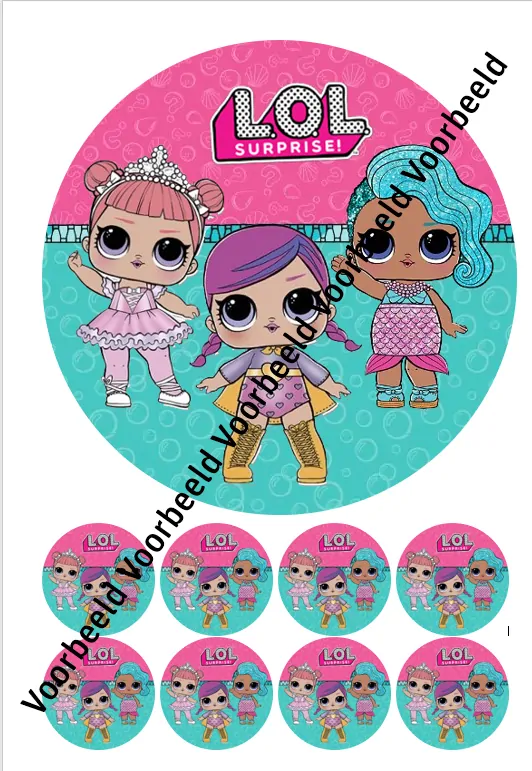 Eetbare Taartprint LOL Surprise 3 – 18 cm rond + 8 cupcake rondjes