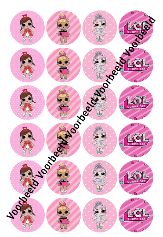 Eetbare Cupcakeprint LOL Surprise 3 – 24 cupcake rondjes