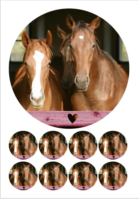 Eetbare Taartprint Paarden – 18 cm rond + 8 cupcake rondjes