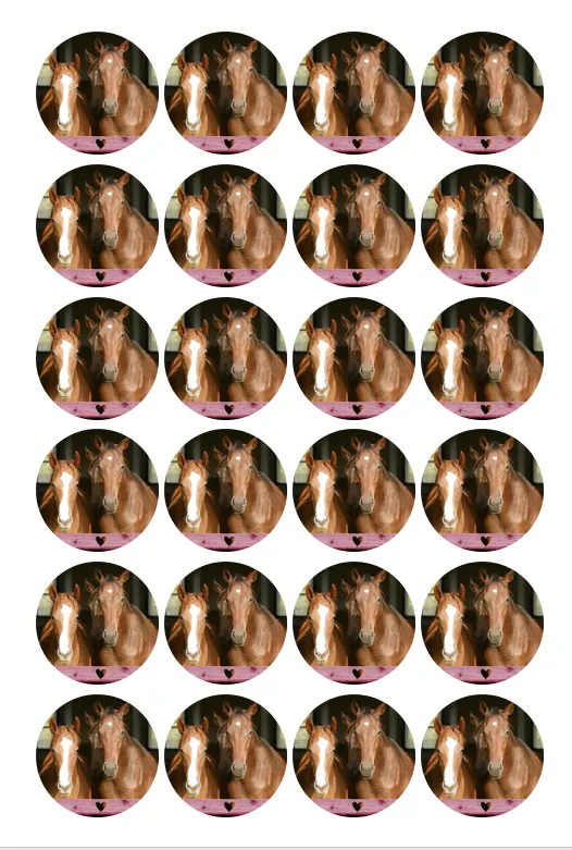 Eetbare Cupcakeprint Paarden – 24 cupcake rondjes
