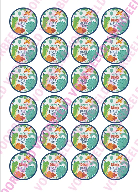 Eetbare Cupcakeprint Dinosaurus 4 – 24 cupcake rondjes