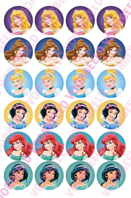Eetbare Cupcakeprint Disney Prinsessen 2 – 24 cupcake rondjes