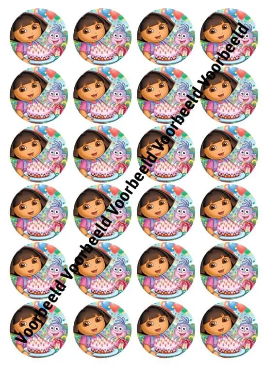 Eetbare Cupcakeprint Dora – 24 cupcake rondjes