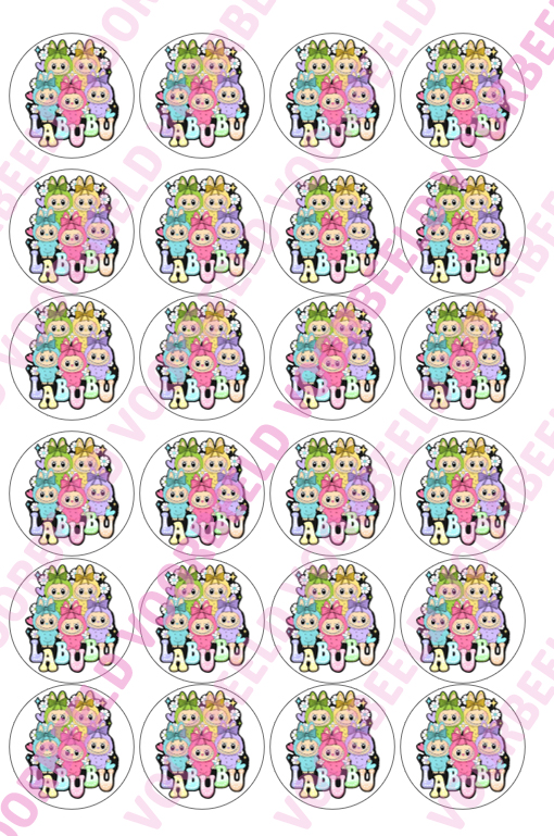 Eetbare Cupcakeprint Labubu – 24 cupcake rondjes