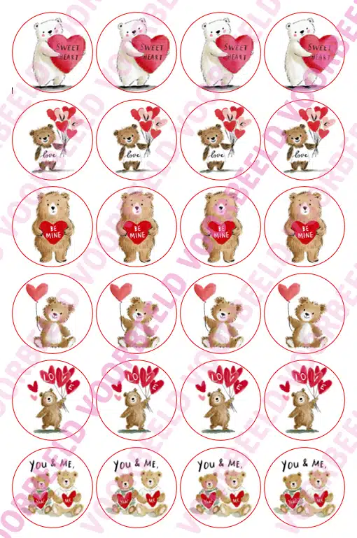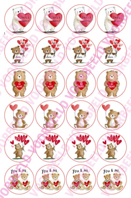 Eetbare Cupcakeprint Valentijn Beertjes – 24 cupcake rondjes