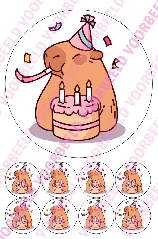 Eetbare Taartprint Capibara – 18 cm rond rond + 8 cupcake rondjes
