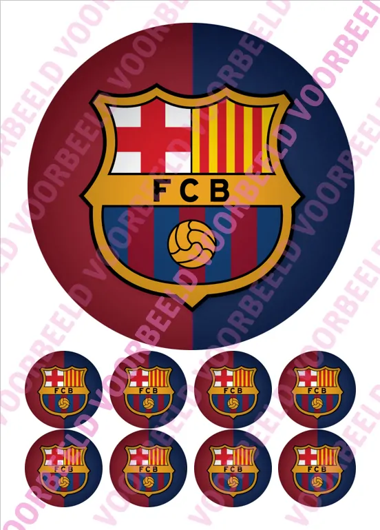 Eetbare Taartprint FC Barcelona – 18 cm rond + 8 cupcake rondjes