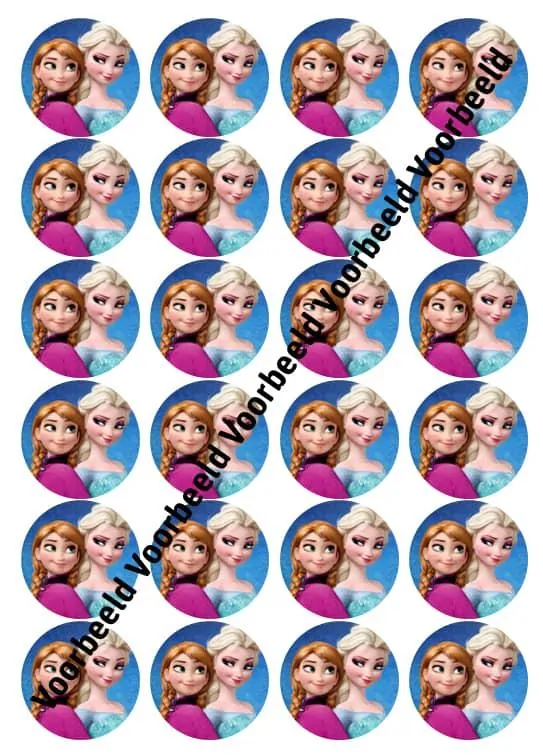 Eetbare Cupcakeprint Frozen Elsa & Anna 1 – 24 cupcake rondjes
