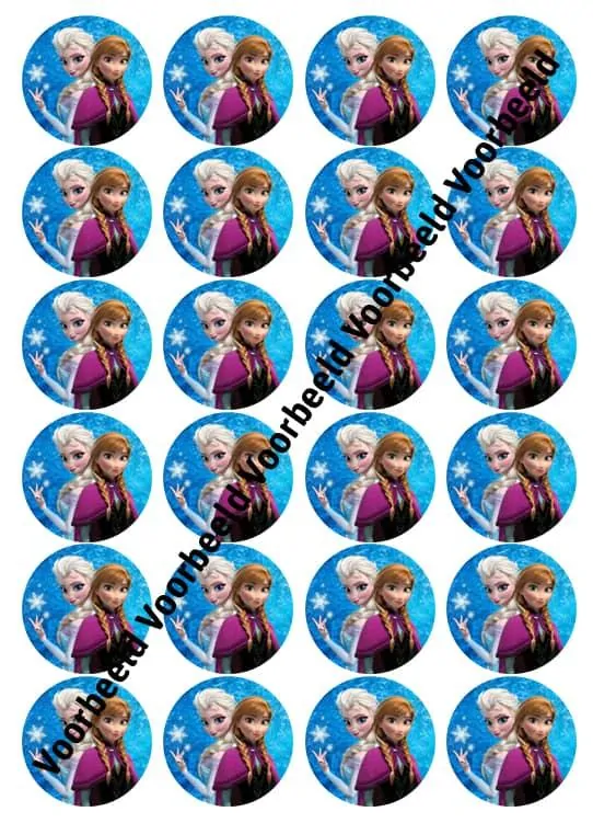 Eetbare Cupcakeprint Frozen Elsa & Anna 2 – 24 cupcake rondjes
