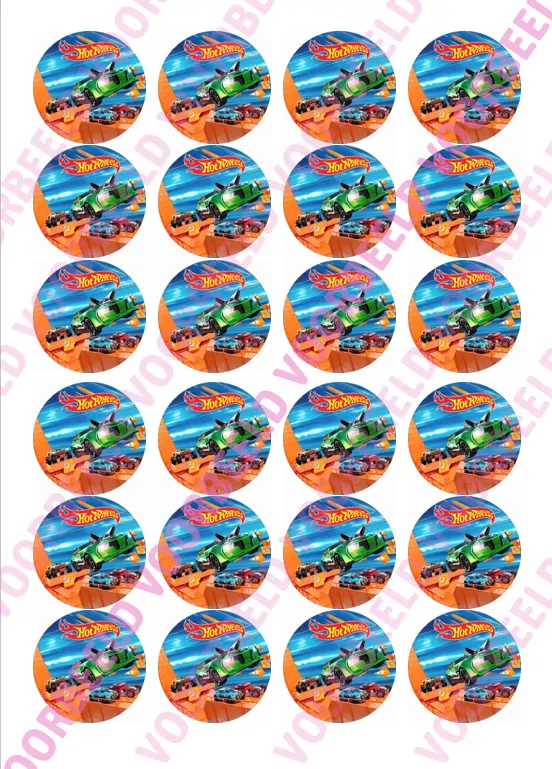 Eetbare Cupcakeprint Hotwheels 4 – 24 cupcake rondjes