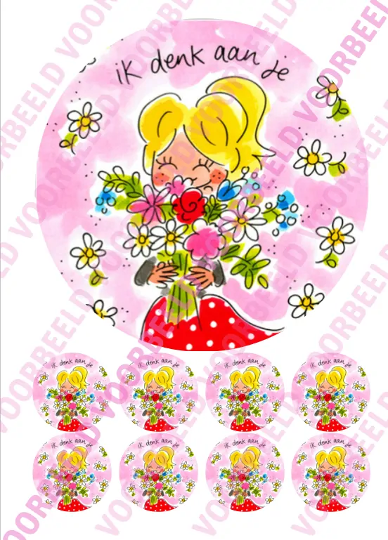 Eetbare Taartprint Ik denk aan je – 18 cm rond + 8 cupcake rondjes