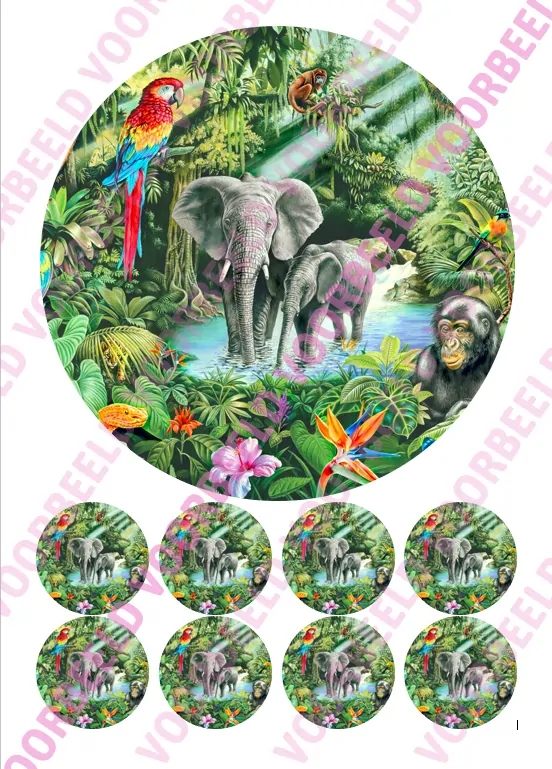 Eetbare Taartprint Jungle 3 – 18 cm rond + 8 cupcake rondjes