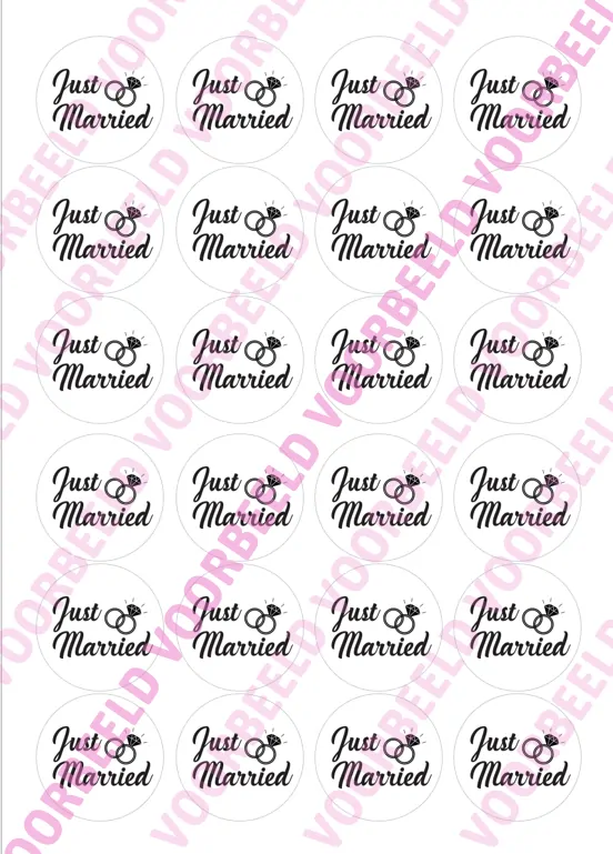 Eetbare Cupcakeprint Just Married 1 – 24 cupcake rondjes