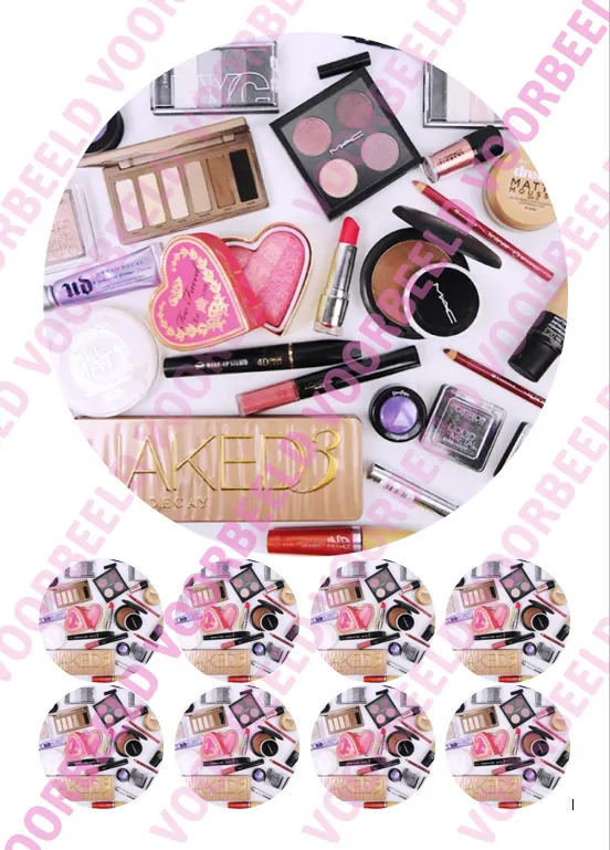 Eetbare Taartprint Make-up 1 – 18 cm rond + 8 cupcake rondjes