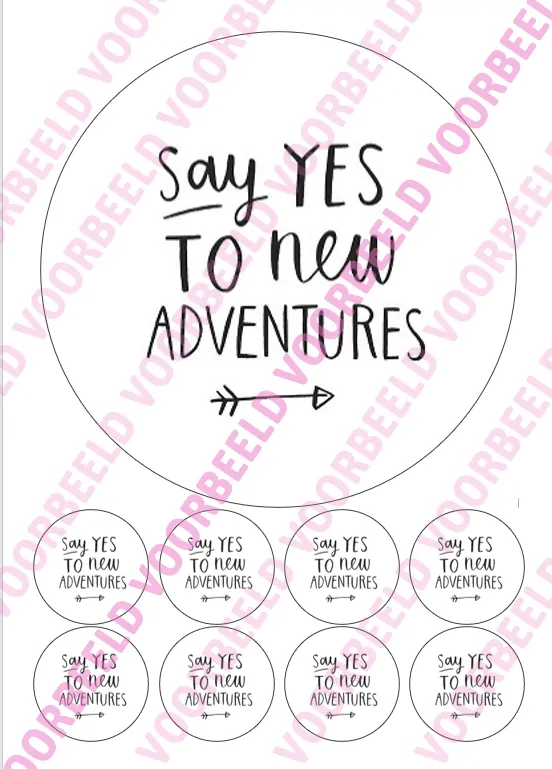 Eetbare Taartprint New Adventures – 18 cm rond + 8 cupcake rondjes