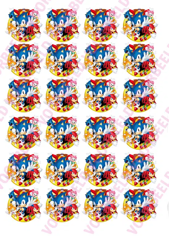 Eetbare Cupcakeprint Sonic – 24 cupcake rondjes