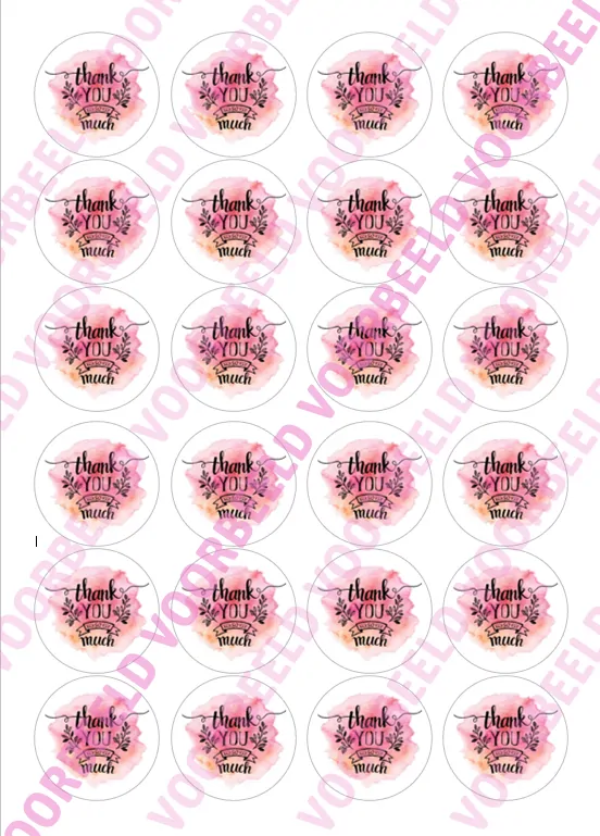Eetbare Taartprint Thank You 3 – 18 cm rond + 8 cupcake rondjes