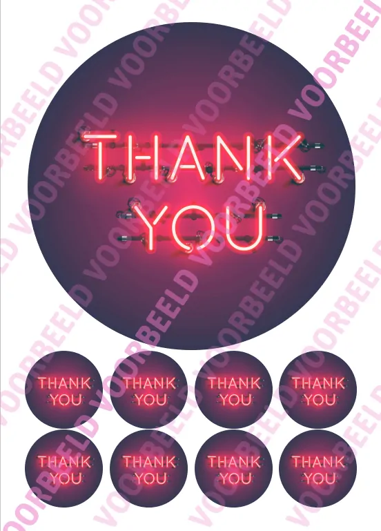 Eetbare Taartprint Thank You 4 – 18 cm rond + 8 cupcake rondjes
