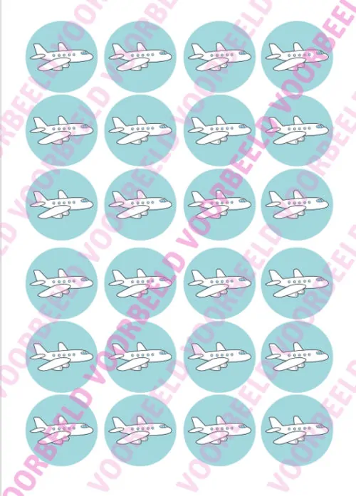 Eetbare Cupcakeprint Vliegtuig – 24 cupcake rondjes