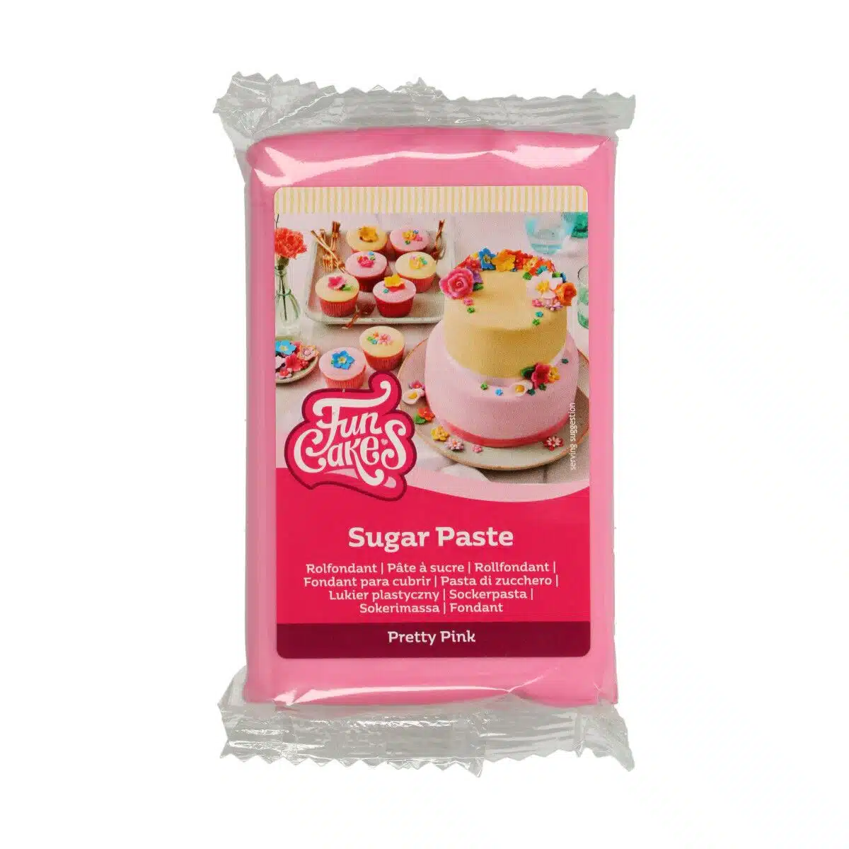 De Pretty Pink rolfondant heeft een mooie felroze kleur en een heerlijke vanillesmaak. Perfect om een taart mee te bekleden en om vormpjes uit te snijden. Voor gebruik goed doorkneden en uitrollen op een dun laagje poedersuiker. Je kunt de rolfondant ook gebruiken om te modelleren of om verschillende vormen en ontwerpen te maken. Ook geschikt om te kleuren met kleurstof. Laat de fondant na het kleuren (afgedekt) een uur rusten voor het beste resultaat. Kneed de rolfondant opnieuw voor verdere verwerking. Om een ronde taart met een diameter van 20 cm te bekleden, heb je ongeveer 500 g fondant nodig.