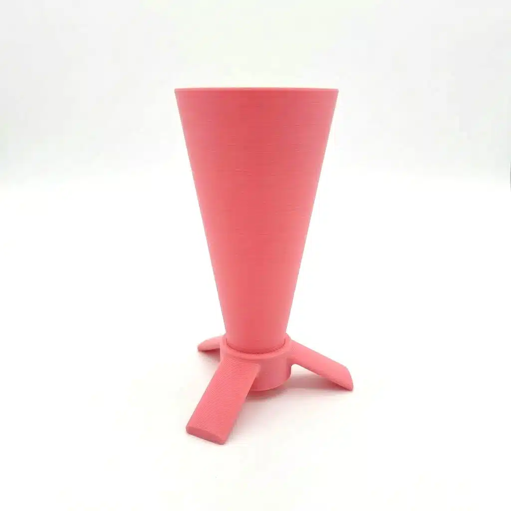 De houder is 3D-geprint van PLA filament en uitgevoerd in een stijlvolle roze kleur. Dankzij het slimme ontwerp bestaat de set uit twee delen: een losse voet en de houder zelf. De opening aan de onderzijde zorgt ervoor dat je de houder eenvoudig en grondig kunt reinigen.