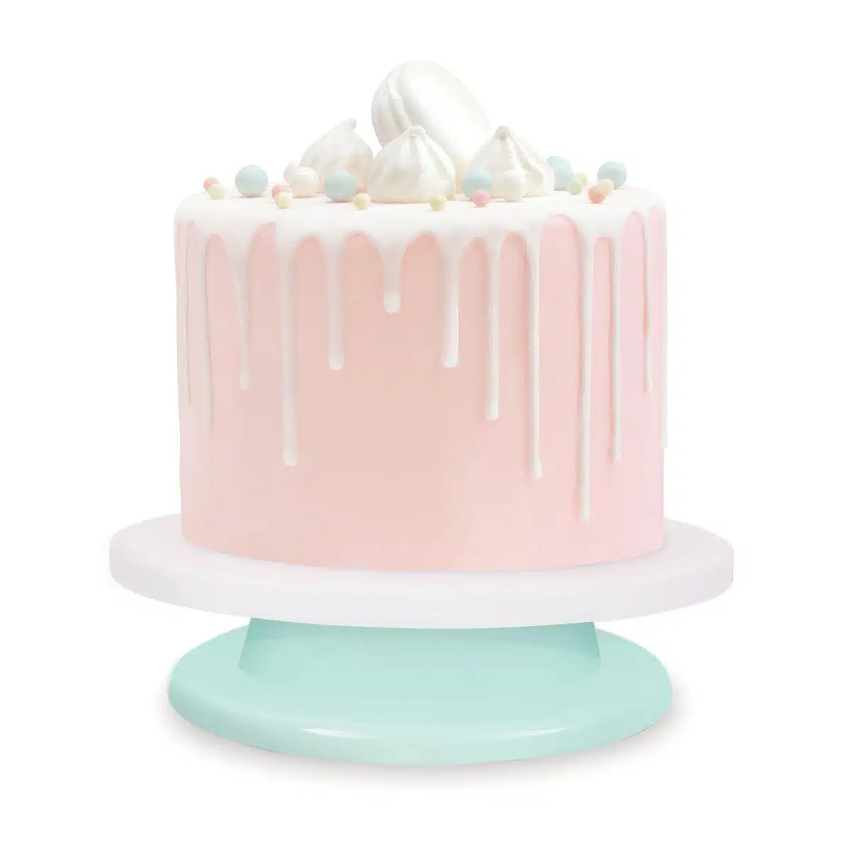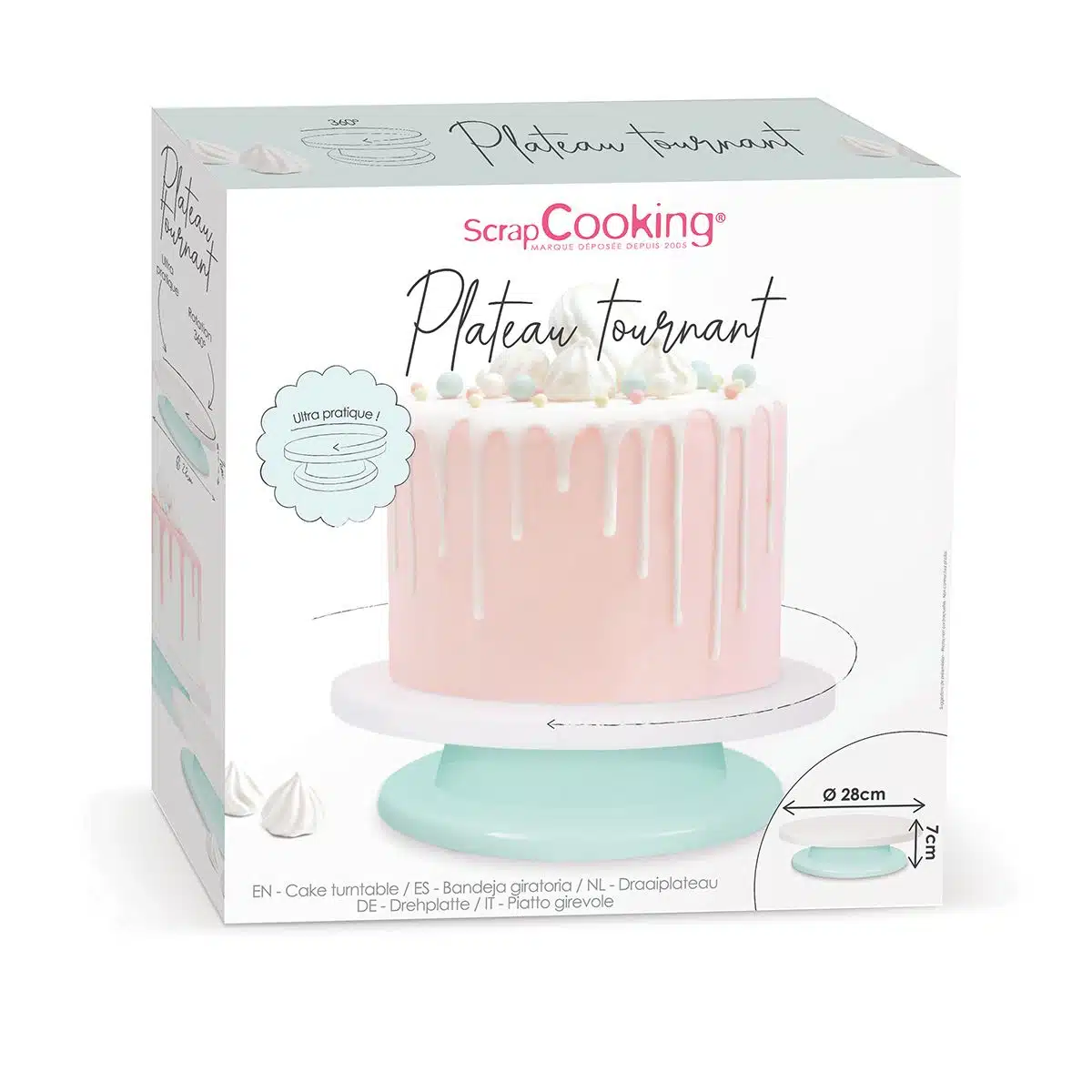 Een verhoogd taartdraaiplateau van Ø28 cm dat je kunt draaien om alle cakes gemakkelijk te bereiken. Perfect voor het bekleden en decoreren van uw taarten.