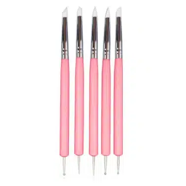 Set van vijf color shapers en ball tools small. Deze tooltjes die gebruikt worden bij het schilderen en tekenen, kunnen ook zeer goed gebruikt worden bij het fijn werk in het modelleren met fondant of modelling paste. Bijvoorbeeld voor het maken van de fijne details in gezichtjes.
