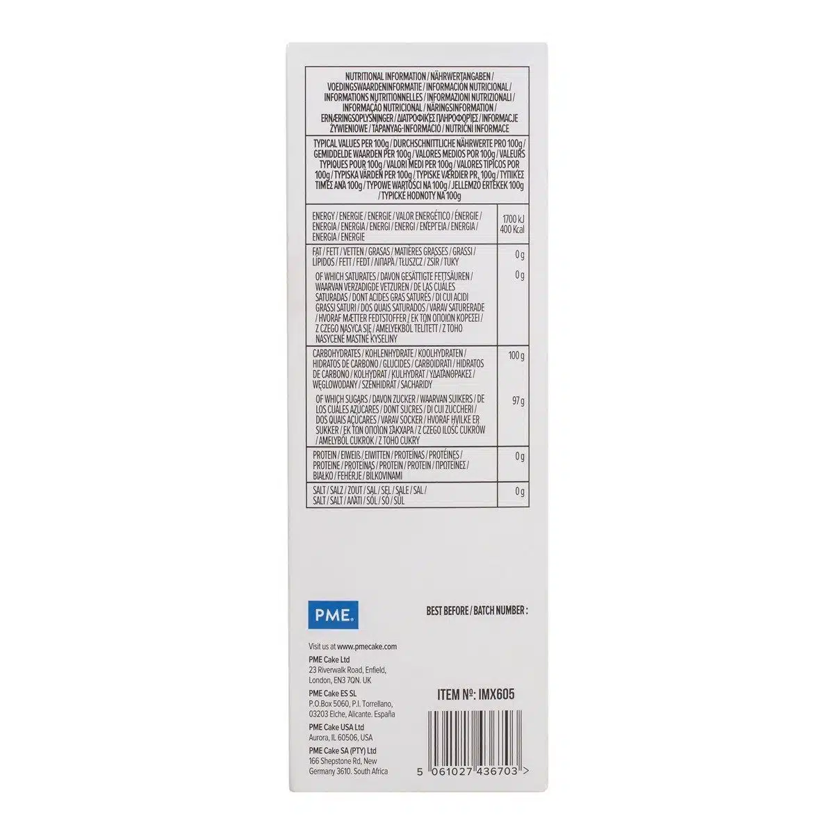 Bestrooi gebak, bestuif donuts of roer zijdezachte glazuren met deze ultrafijne poedersuiker van PME. Perfecte glazuur, op de PME-manier! Maak je eigen glazuur door kleur- of smaakstoffen toe te voegen, passend bij elk thema of elke smaak. Gemaakt van hoogwaardige ingrediënten die keer op keer consistente resultaten garanderen. Ultrazacht en zijdeachtig, lost perfect op. Gebruik een zeef voor klontervrije resultaten elke keer.