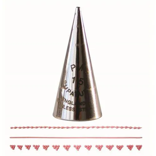 Kwalitatief hoogstaande, roestvrij stalen spuitmondjes van PME. Uit een stuk, dus zonder lasnaad. Voor fijn spuitwerk, bijv. om te schrijven.