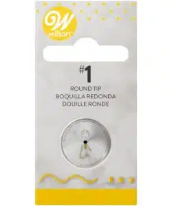 Metalen spuitmondje (decorating tip) van Wilton voor lijntjes, letters, balletjes, pareltjes, kant etc. Per stuk verpakt in blisterverpakking (carded)