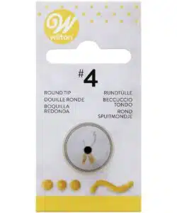 Metalen spuitmondje (decorating tip) van Wilton voor lijntjes, letters, balletjes, pareltjes, kant etc. Per stuk verpakt in blisterverpakking (carded)