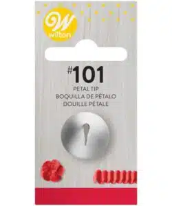 Metalen spuitmondje (decorating tip) van Wilton voor het maken van realistische bloemblaadjes, ruffles, ruches, strikjes en meer. De fijn gesneden ribbels op dit spuitmondje creëren decoraties met uitstekende details. Een klassieker voor elke decorateur, werkt met standaard spuitzakken en couplers. Per stuk verpakt in blisterverpakking (carded).