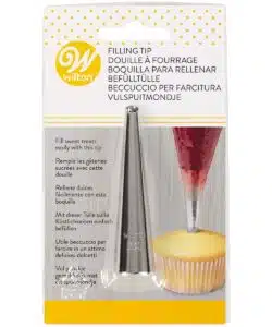 Vul je cupcakes met jam een andere vulling gemakkelijk met dit spuitmondje van Wilton! Het spuitmondje is per stuk verpakt in een blisterverpakking (carded).