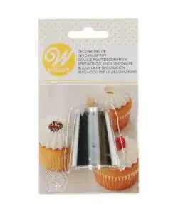 Maak eenvoudig een mooie decoratie met de Wilton Sultan Decoratietip. Deze tip maakt een cirkelontwerp met een geribbelde rand en een open midden.